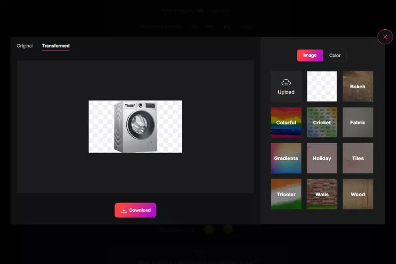 Erase.bg offers a variety of backgrounds, including solid colors, gradients, patterns, and images even you can upload your own image.