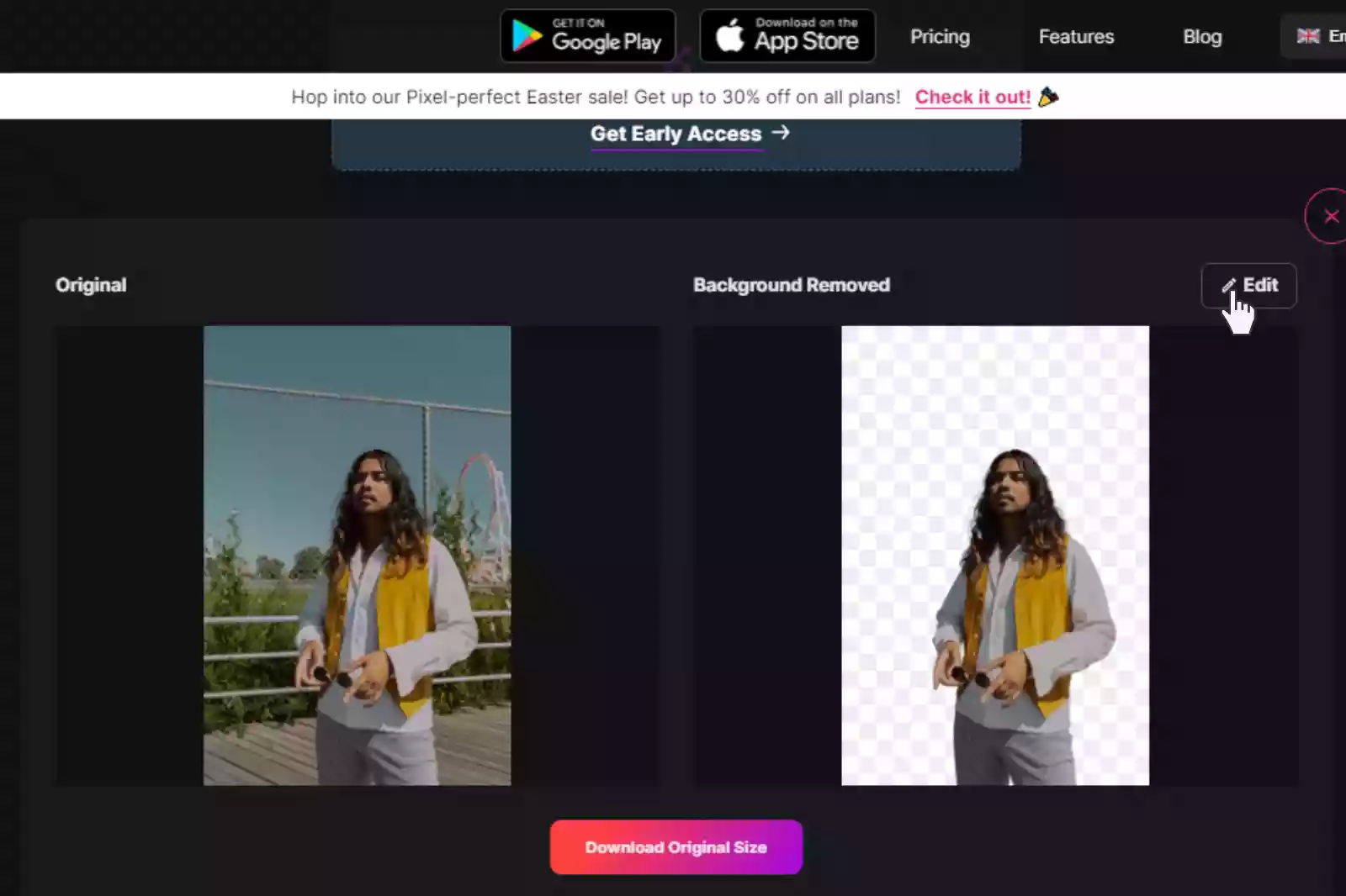 Step 6 - Erase.bg also allows you to change the background of your image. Just go to the “Edit” button. Select a suitable background, and finally, download the image.